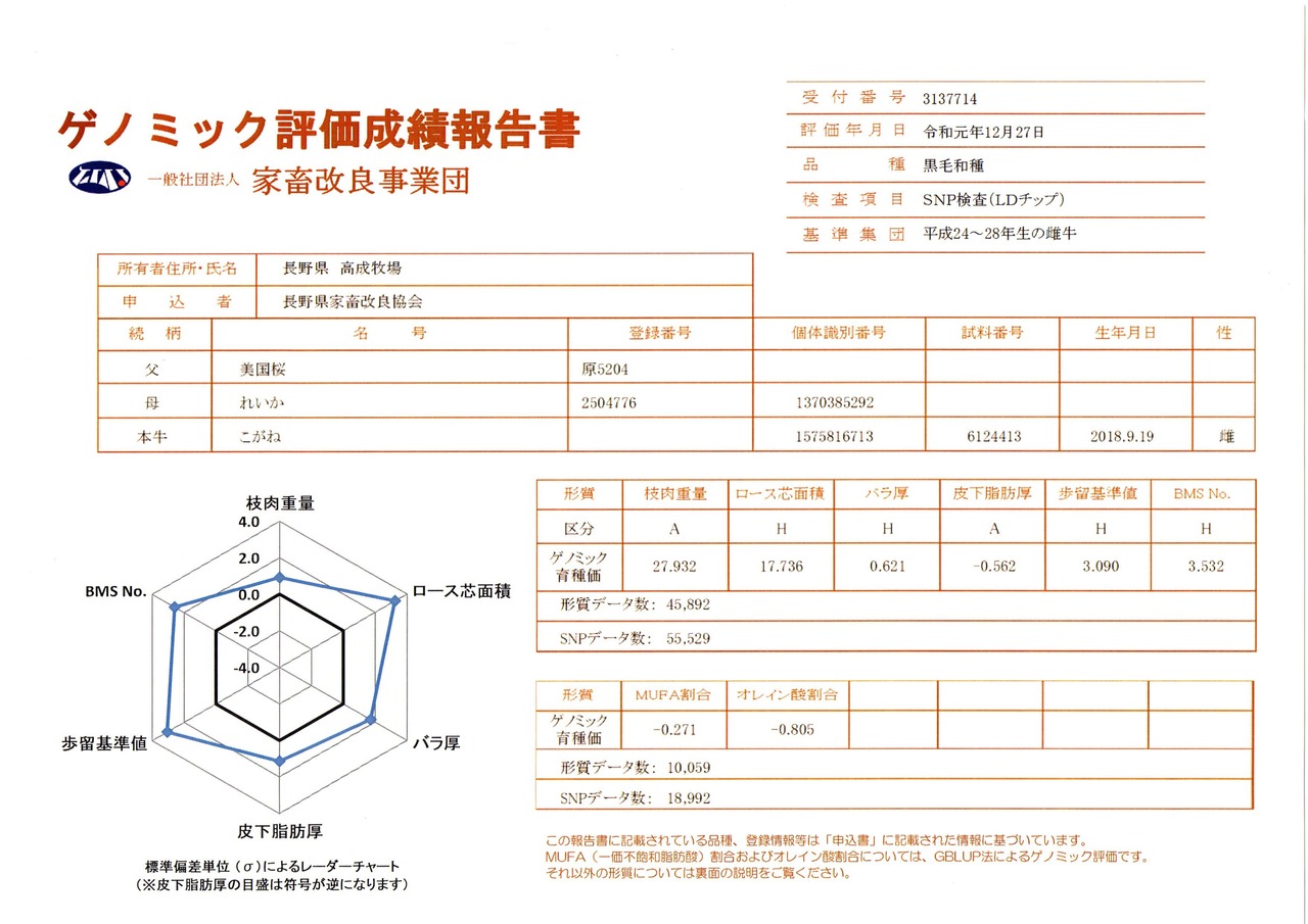 これまで判明している「こがね」産子のゲノミック育種価